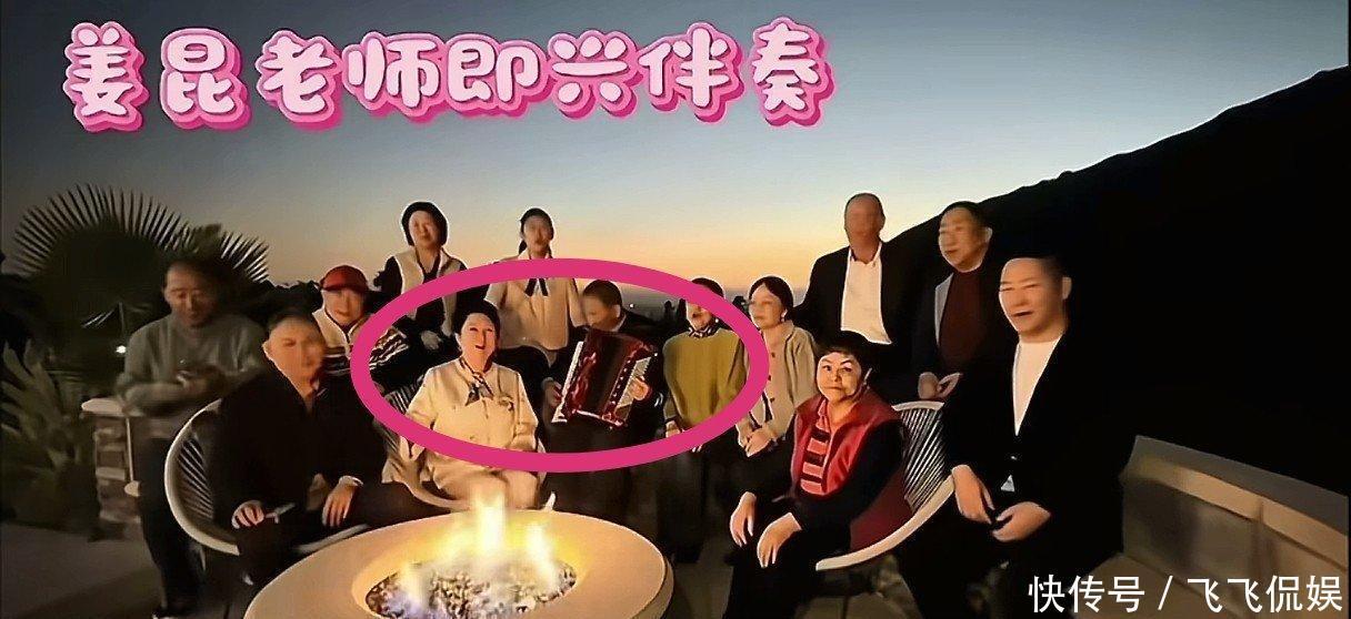 视频里总共有13个人,姜昆和他夫人坐在正中间,姜昆手里还拿着个手风琴。一群人坐在阳台上,夕阳在身后,他们唱起了那首经典的红歌《我和我的祖国》。